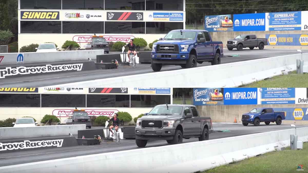 It’s exhausting hearing the old-schoolers demanding V8 power in trucks (and muscle cars for that matter) and poopooing Ecoboost technology. That way of thinking gets proven obsolete when Justin Dugan of the YouTube Video Series American Trucks’ (AT) The Haul tests two similarly equipped Ford F150 SuperCrew’s, pulling them into the AT studio for a dyno battle, both stock and tuned, before heading to the drag strip for a head-to-head battle.