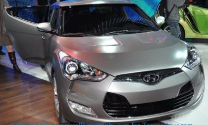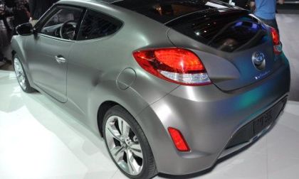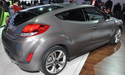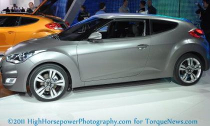 The passenger's side rear view of the 2012 Hyundai Veloster