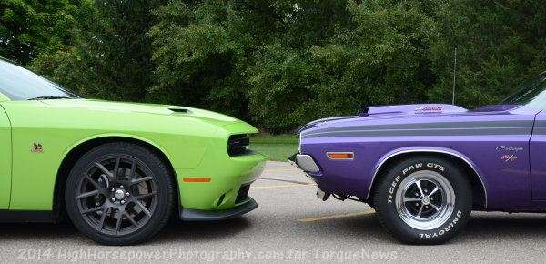 Advertising A close up front shot of the 1971 Dodge Challenger R/T convertible in Plum Crazy with the 2015 Dodge Challenger Scat Pack in Sublime Green. Add new comment Your name Email The content of this field is kept private and will not be shown publicly. Subject Comment About text formats Comments_filter Allowed HTML tags: <em> <strong> <cite> <blockquote cite> <ul> <ol'> <code> <li> <i> No HTML tags allowed. Lines and paragraphs break automatically. Advertising Advertising Advertising