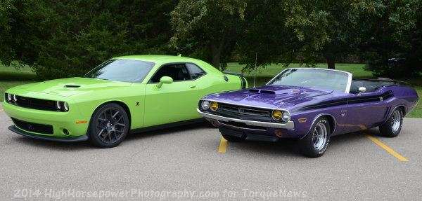 Advertising The front 3/4 of the 1971 Dodge Challenger R/T convertible in Plum Crazy with the 2015 Dodge Challenger Scat Pack in Sublime Green. Add new comment Your name Email The content of this field is kept private and will not be shown publicly. Subject Comment About text formats Comments_filter Allowed HTML tags: <em> <strong> <cite> <blockquote cite> <ul> <ol'> <code> <li> <i> No HTML tags allowed. Lines and paragraphs break automatically. Advertising Advertising Advertising