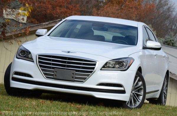 The front end of the 2015 Hyundai Genesis 3.8 Sedan