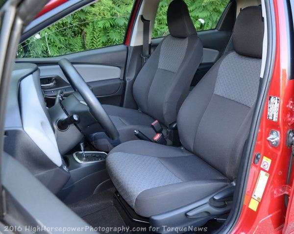 Advertising The front seats of the 2016 Toyota Yaris LE 5-door in black cloth Add new comment Your name Email The content of this field is kept private and will not be shown publicly. Subject Comment About text formats Comments_filter Allowed HTML tags: <em> <strong> <cite> <blockquote cite> <ul> <ol'> <code> <li> <i> No HTML tags allowed. Lines and paragraphs break automatically. Advertising Advertising Advertising