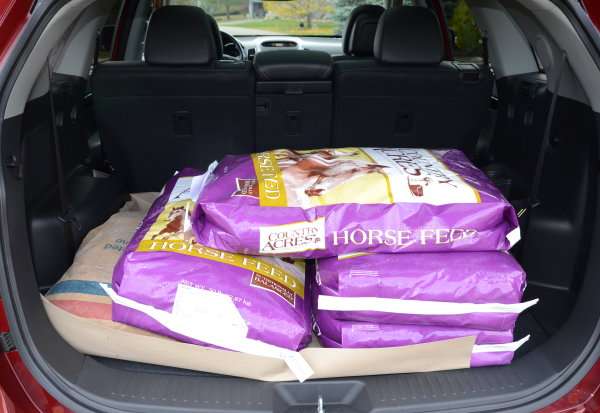Advertising The rear cargo area of the 2014 Kia Sorento SX AWD filled with 250lbs of bagged horse grain Add new comment Your name Email The content of this field is kept private and will not be shown publicly. Subject Comment About text formats Comments_filter Allowed HTML tags: <em> <strong> <cite> <blockquote cite> <ul> <ol'> <code> <li> <i> No HTML tags allowed. Lines and paragraphs break automatically. Advertising Advertising Advertising
