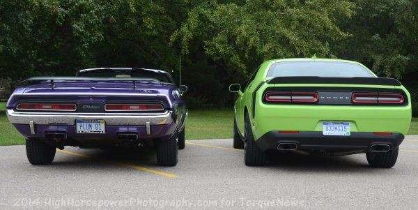 Advertising The rear end view of the 1971 Dodge Challenger R/T convertible in Plum Crazy with the 2015 Dodge Challenger Scat Pack in Sublime Green. Add new comment Your name Email The content of this field is kept private and will not be shown publicly. Subject Comment About text formats Comments_filter Allowed HTML tags: <em> <strong> <cite> <blockquote cite> <ul> <ol'> <code> <li> <i> No HTML tags allowed. Lines and paragraphs break automatically. Advertising Advertising Advertising