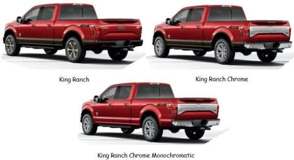 Advertising The three rear end views of the 2015 Ford F150 King Ranch - showing the back end in standard, chrome and monochromatic form. Add new comment Your name Email The content of this field is kept private and will not be shown publicly. Subject Comment About text formats Comments_filter Allowed HTML tags: <em> <strong> <cite> <blockquote cite> <ul> <ol'> <code> <li> <i> No HTML tags allowed. Lines and paragraphs break automatically. Advertising Advertising Advertising