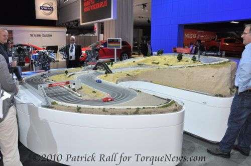 Advertising This picture shows the Ford slot car track, giving everyone a chance to pretend to drive the Boss around a road course. News Categories Gallery Advertising Advertising