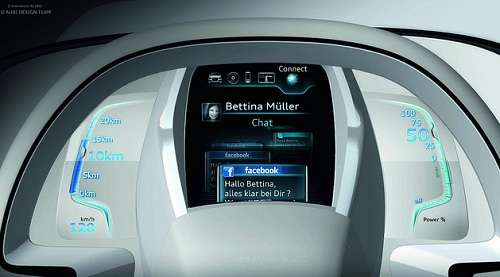 Advertising Advertising Audi A2 concept electric car, which will be presented at th 2011 Frankfurt Auto Show, displays a Facebook chat option on the dashboard. News Categories Gallery Carmakers Audi Advertising Advertising