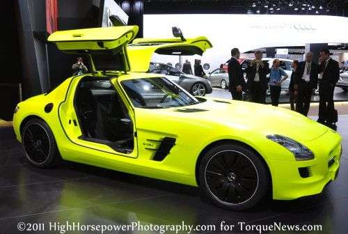 Advertising Advertising A shot of the gullwing doors of the SLS AMG E-Cell opened for the crowd to check out the high tech interior. News Categories Auto Shows Gallery Carmakers Mercedes Advertising Advertising