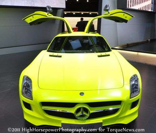 Advertising Advertising The awesome SLS AMG E-Cell with the Gullwing doors open. News Categories Auto Shows Gallery Carmakers Mercedes Advertising Advertising
