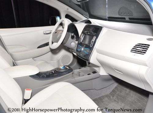 Advertising Advertising The Nissan Leaf interior in bright white at the Detroit Auto Show. News Categories Auto Shows Gallery Carmakers Nissan Advertising Advertising