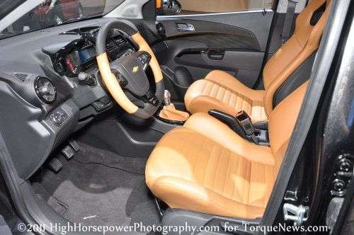 Advertising Advertising Showing off the two-tone interior and sporty race seats of the Sonic Z-Spec Concept. News Categories Auto Shows Gallery Carmakers Chevrolet Advertising Advertising