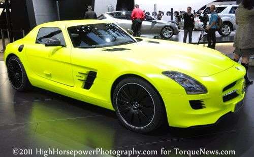 Advertising Advertising The SLS AMA E-Cell on the floor of the Detroit Auto Show after being unveiled to the crowd. News Categories Auto Shows Gallery Carmakers Mercedes Advertising Advertising