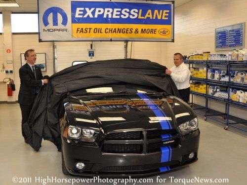 Advertising Advertising As the two Mopar execs pulled away the satin sheet, the Mopar '11 Charger was unveiled to the media. News Categories Automotive News Gallery Carmakers Chrysler Dodge Advertising Advertising