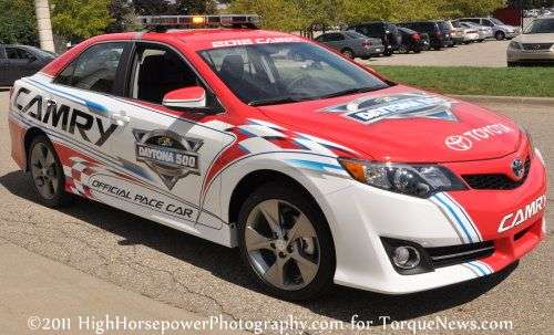 Advertising Advertising The 2012 Toyota Camry Daytona 500 pace car features a unique red and white pace car scheme. News Categories Gallery Carmakers Toyota Advertising Advertising