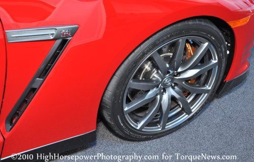 Advertising Advertising This shot shows the dark grey wheel wrapped in high performance rubber of the 2012 Nissan GT-R News Categories Gallery Advertising Advertising